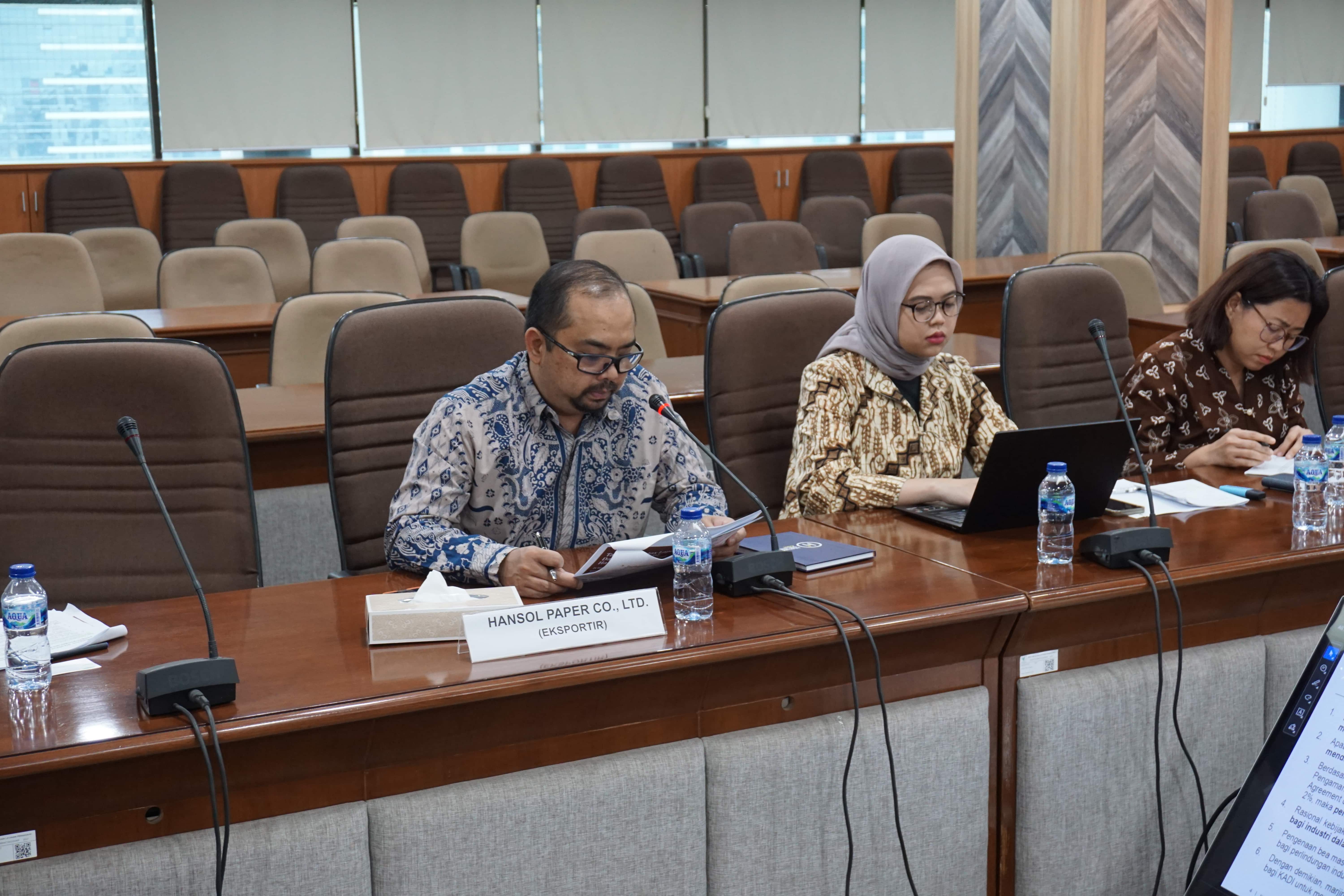 KADI melakukan kegiatan Dengar Pendapat Publik (Public Hearing) dalam rangka penyelidikan antidumping terhadap impor produk Duplex Board pada 24 September 2025 pukul 10.00 WIB bertempat di Ruang Rapat Anggrek, Gedung 1 Lantai 12, Kementerian Perdagangan.
