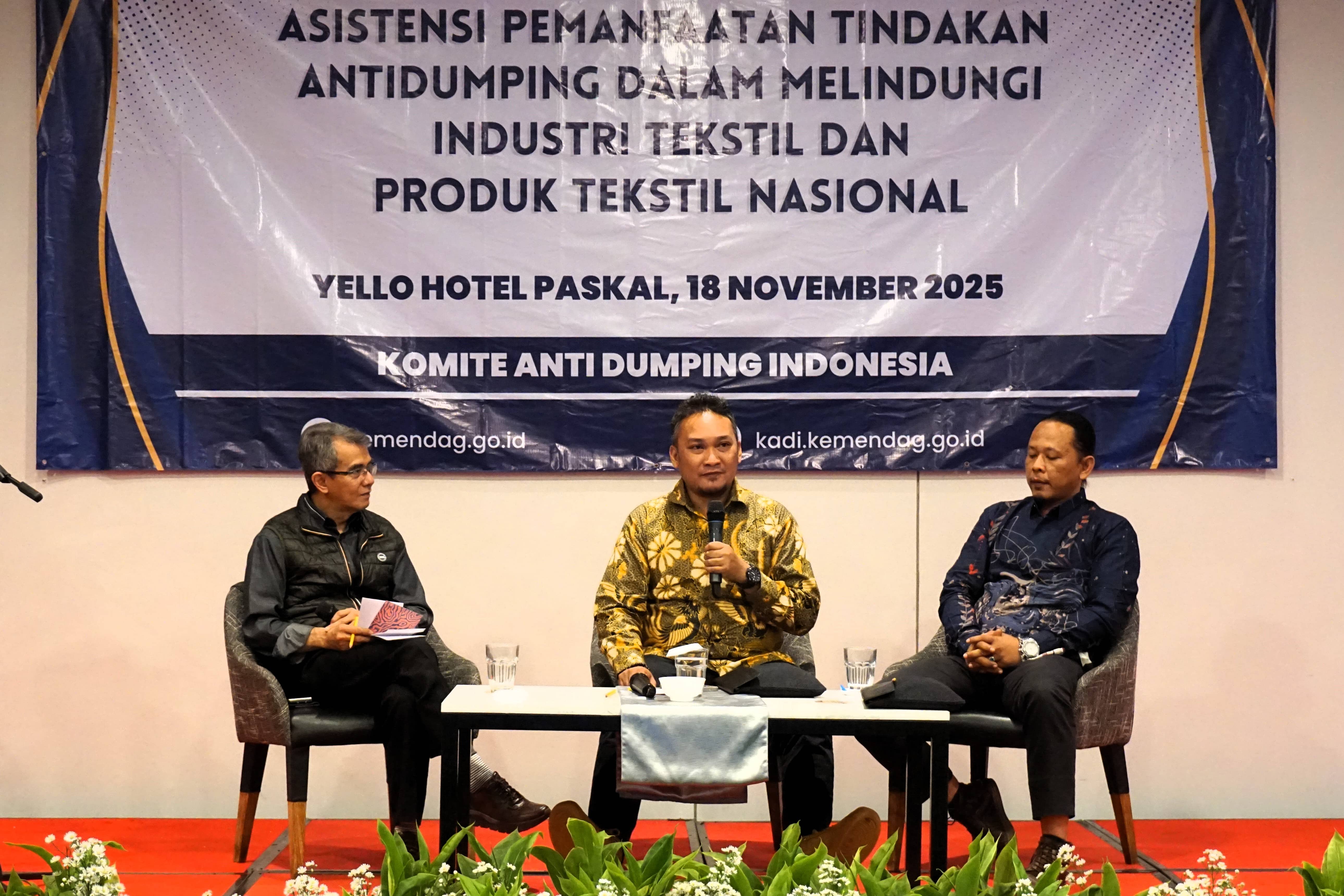 Selasa, 18 November 2025, Komite Anti Dumping Indonesia (KADI) menyelenggarakan kegiatan Asistensi Pemanfaatan Tindakan Antidumping dalam Melindungi Industri Tekstil dan Produk Tekstil (TPT) Nasional di Bandung, Jawa Barat. Kegiatan ini dihadiri oleh pelaku industri dari Asosiasi Pertekstilan Indonesia (API) dan Asosiasi Produsen Serat dan Benang Filamen Indonesia (APSyFI).