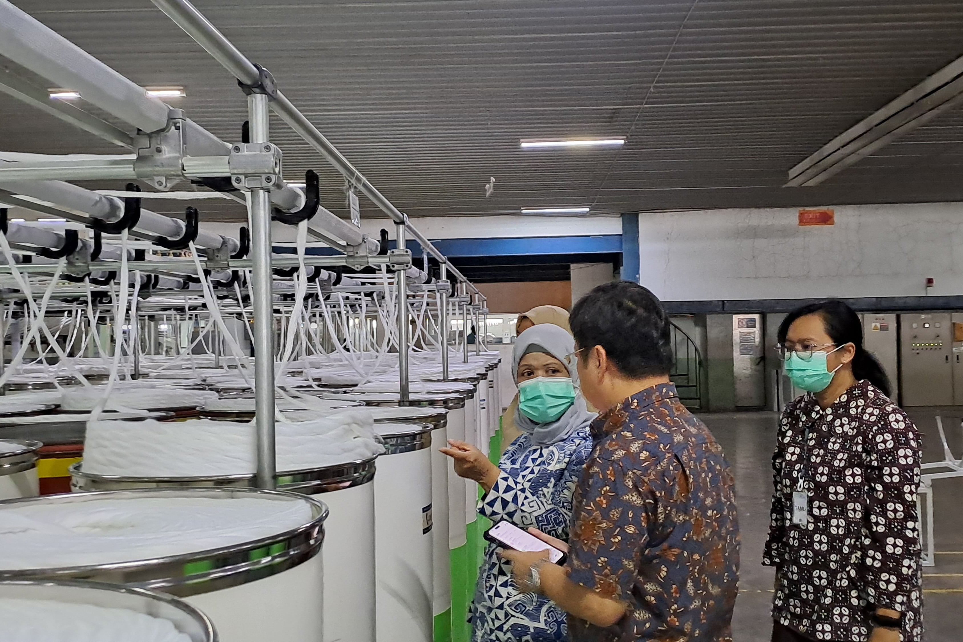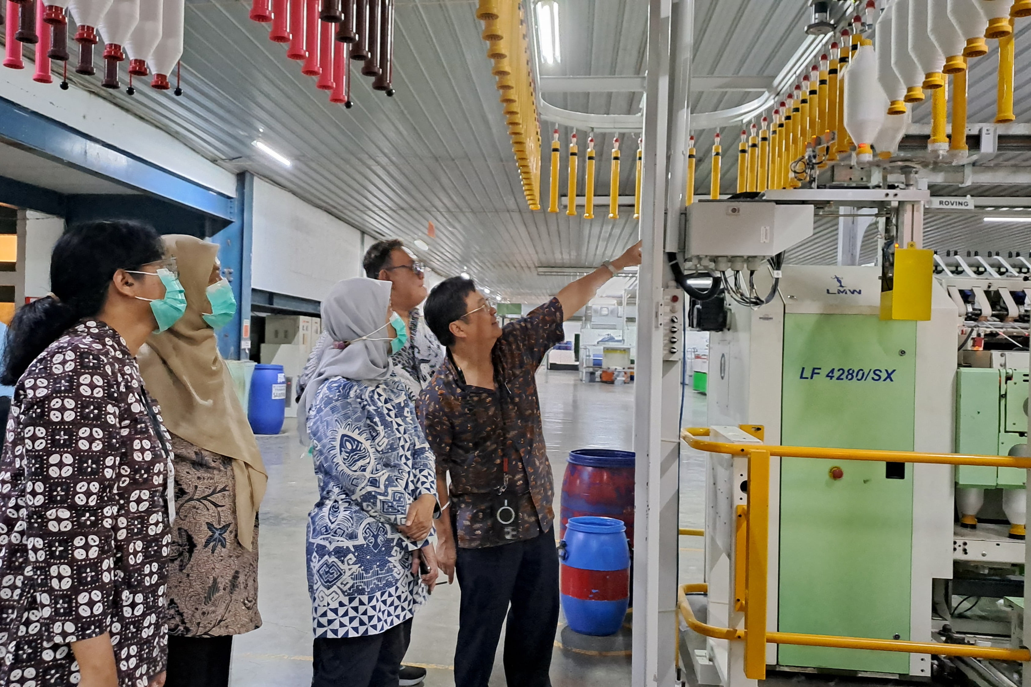 Ketua KADI juga berkesempatan meninjau langsung proses produksi benang (selain benang jahit) di fasilitas produksi PT Dhanar Mas Concern.