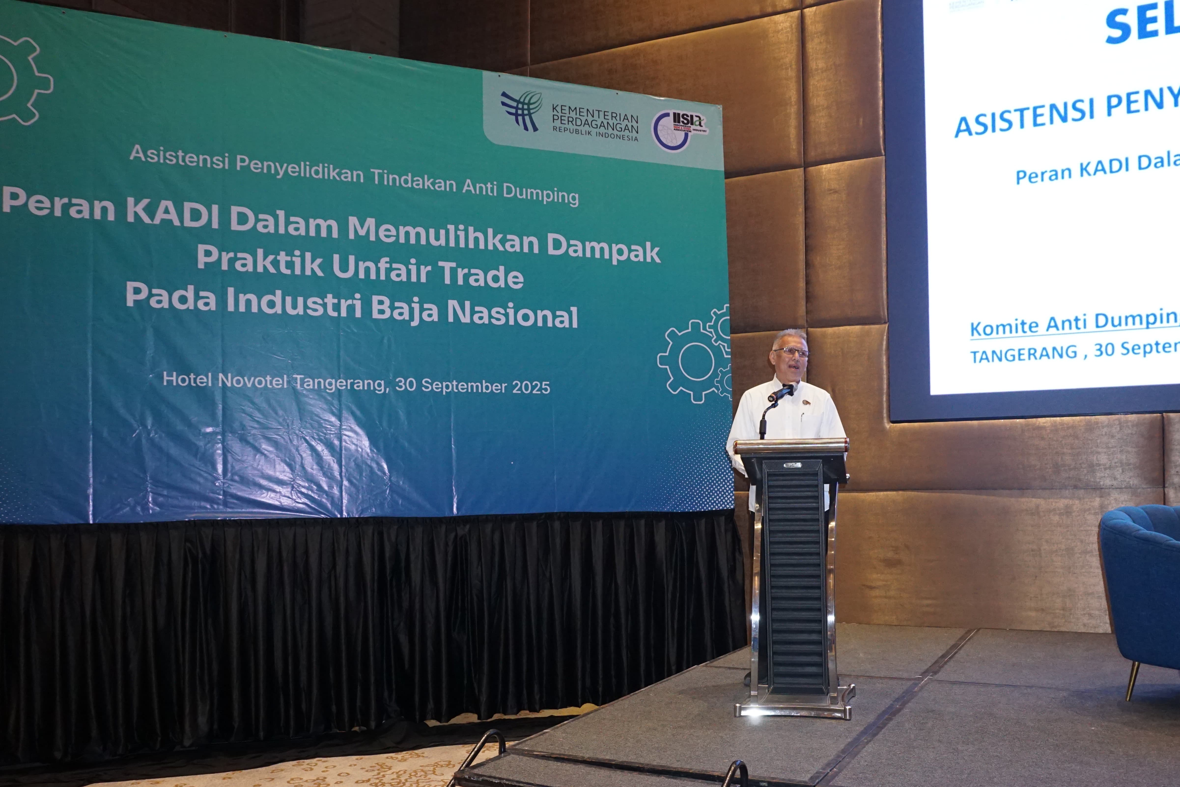 Komite Anti Dumping Indonesia (KADI) menggelar kegiatan Asistensi kepada pelaku usaha industri baja dari hulu sampai hilir dengan Tema “Peran KADI dalam Memulihkan Dampak Praktik Unfair Trade pada Industri Baja Nasional” bekerja sama dengan The Indonesian Iron & Steel Industry Association (IISIA) bertempat di Hotel Novotel Tangerang, Banten (30/9). Di awal kegiatan, Ketua KADI menyampaikan kepada seluruh peserta mengenai pentingnya penggunaan instrumen trade remedies dalam rangka melindungi industri dalam negeri apabila terganggu dengan adanya praktik unfair trade.